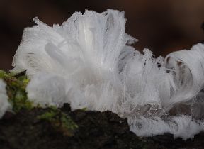 Hair ice is a rare type of ice formation where the presence of a particular fungus in rotting wood produces thin strands of ice which resemble hair or candy floss.